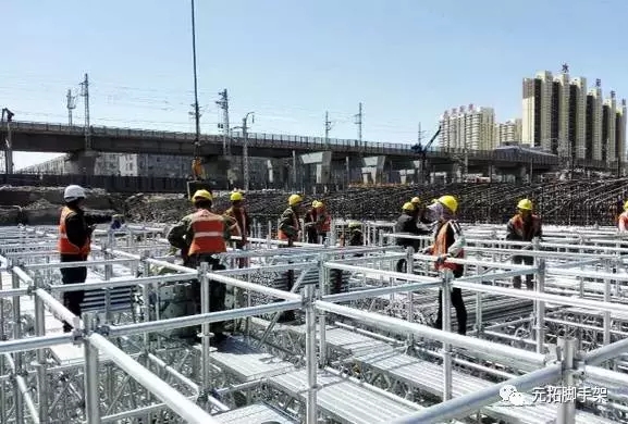 以中鐵六局承辦的內(nèi)蒙古呼和浩特市鐵路下穿立交橋項(xiàng)目為例,該項(xiàng)目就是使用元拓的圓盤式腳手架支撐體系來完成的。項(xiàng)目現(xiàn)場(chǎng)兩個(gè)框構(gòu)橋,一個(gè)長(zhǎng)38米,寬16米,高8米;另一個(gè)長(zhǎng)38米,寬22米,高7.6米。